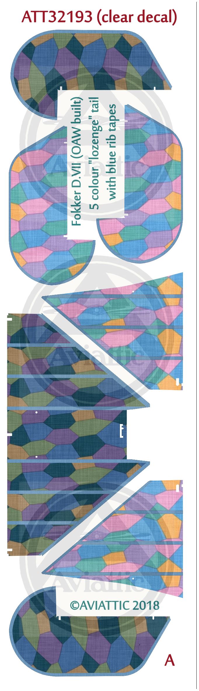 Aviattic - 1/32 Fokker D.VII (OAW built) 5 colour lozenge tail with blue rib tapes (new tail sets)