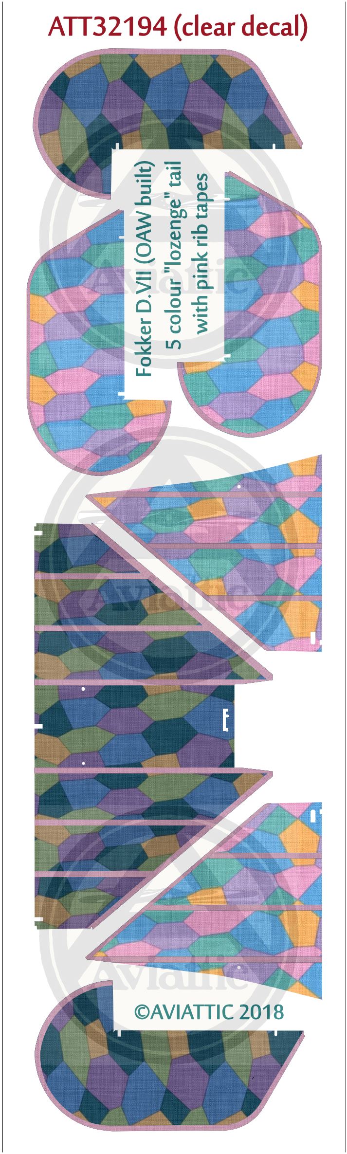 Aviattic - 1/32 Fokker D.VII (OAW built) 5 colour lozenge tail with pink rib tapes (new tail sets)