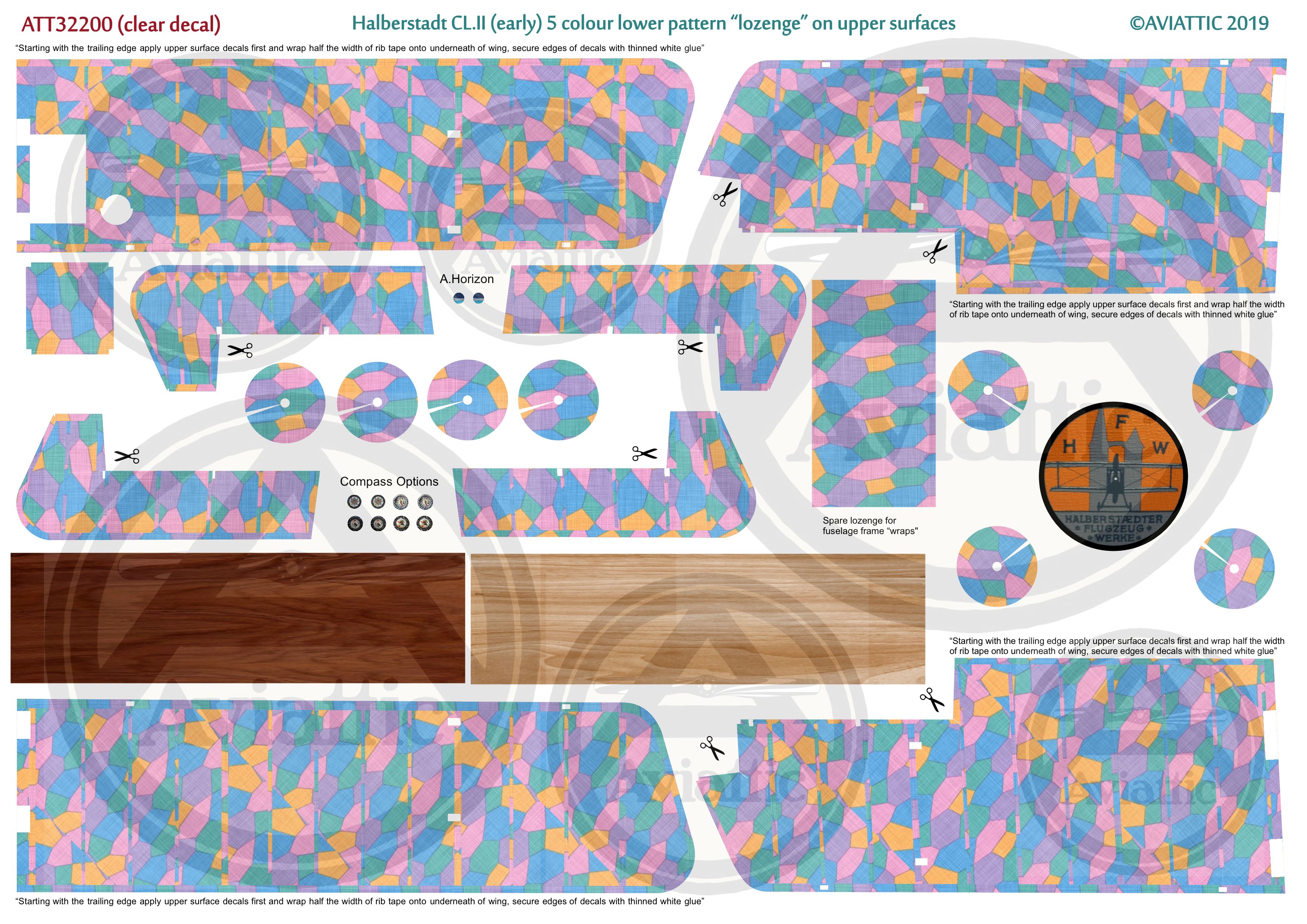 Aviattic - 1/32 Halberstadt CL.II 5 colour lower lozenge on upper surfaces with lozenge rib tapes (Clear decal paper)