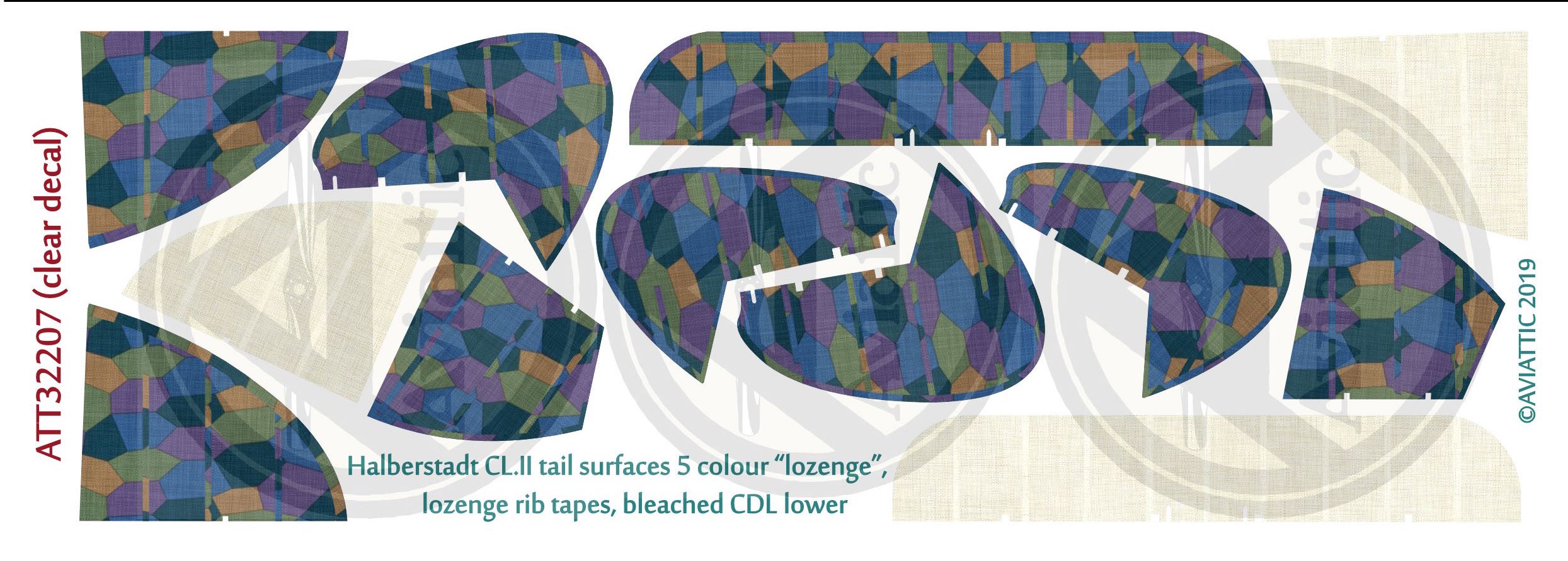 Aviattic - 1/32 Halberstadt CL.II tail surfaces 5 colour alternative palette lozenge with lozenge rib tapes, bleached CDL lower (Clear decal)