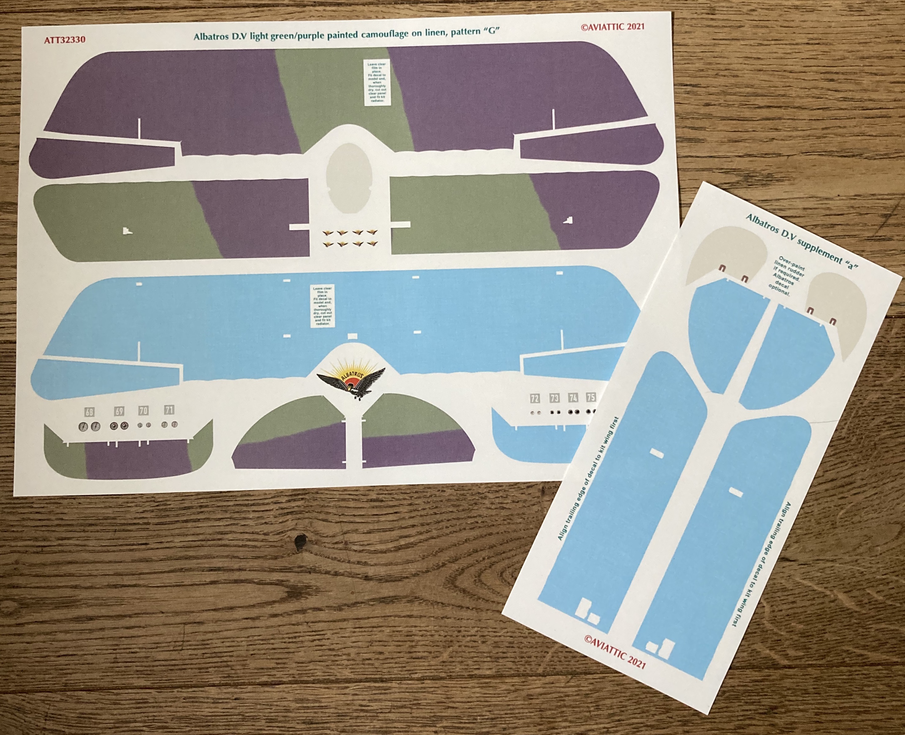 Aviattic - 1/32 Albatros D.V light green/purple painted camouflage on linen, pattern 'G'