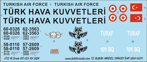 Babibi Models - 1/72 KC-135 Stratotanker 101.SQ Turaf Decal Set