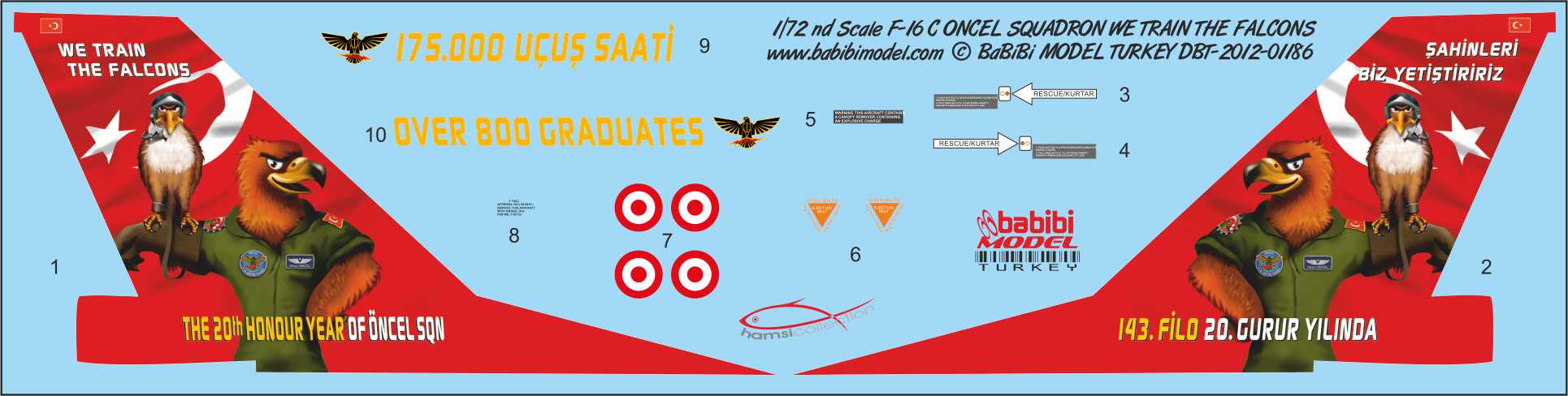 Babibi Models - 1/72 Lockheed-Martin F-16C Fighting Falcon Oncel sq We Train The Falcons Red Tail Decal Set
