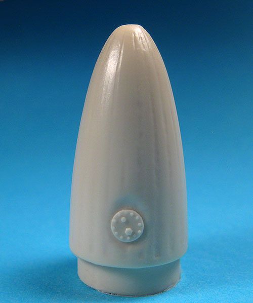 Super-detailed, seamless nose and tailcones for Tamiya's 108 gallon drop tanks capture the rough, scalloped look of the paper mache. The paper drop tanks in the Tamiya Mustang kit are accurate in shape and size, but they do not capture the look of the end caps on the real tanks. The real tanks are made of compressed, impregnated paper. The nose and tail caps were laid up with paper mache style strips and have a slight ribbed effect with a rough surface texture. Tamiya's kit parts are smooth with even spaced radial lines scribed around them. While designed specifically for the Tamiya kit, the Barracuda Studios parts can be used with the Dragon 1/32 P-51D.