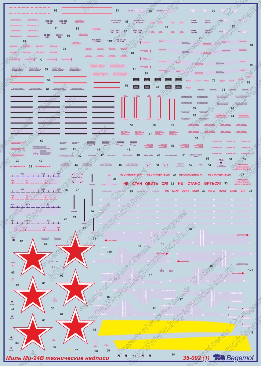 Begemot - 1/35 Mil Mi-24V Full stencil data for one helicopter includind inner surfaces, main and tail rotors and for main types USSR/Russia helicopter external armaments: UB-16/57, UB-32/57, B-8V20A, UPK-23-250, GUV-1, GUV-2, KMG-U, KMGU-2, PTB-450.