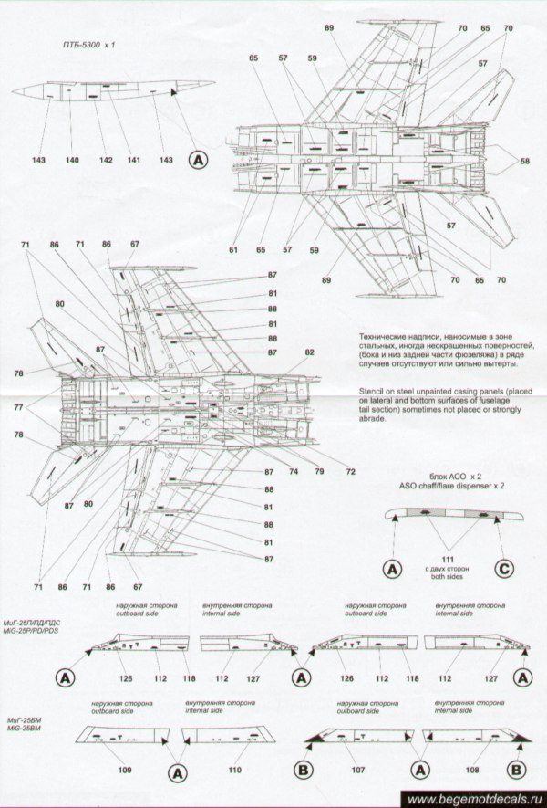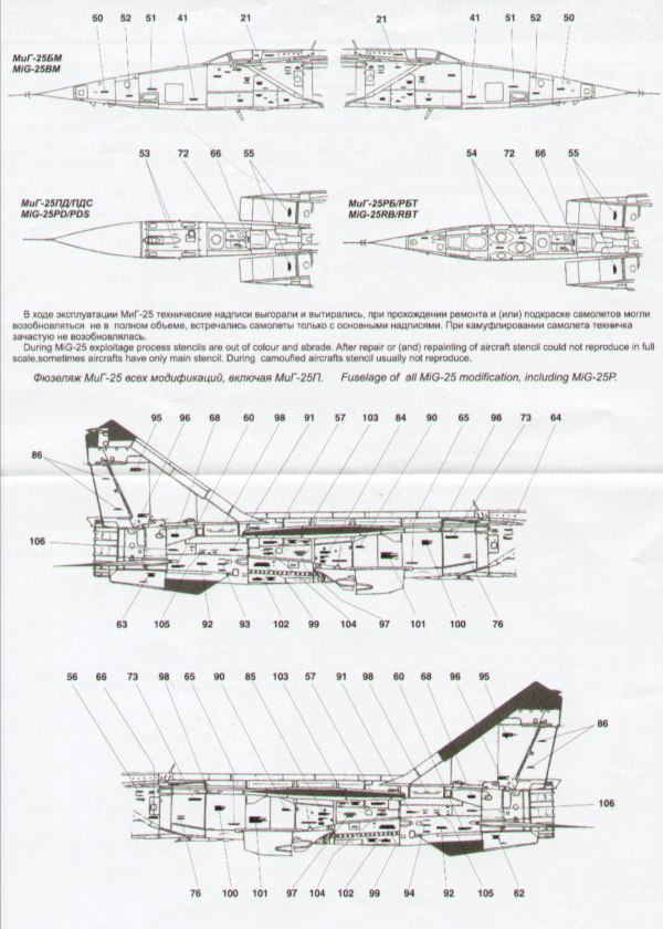 Begemot - 1/48 Mikoyan MiG-25 Foxbat Stencil Data