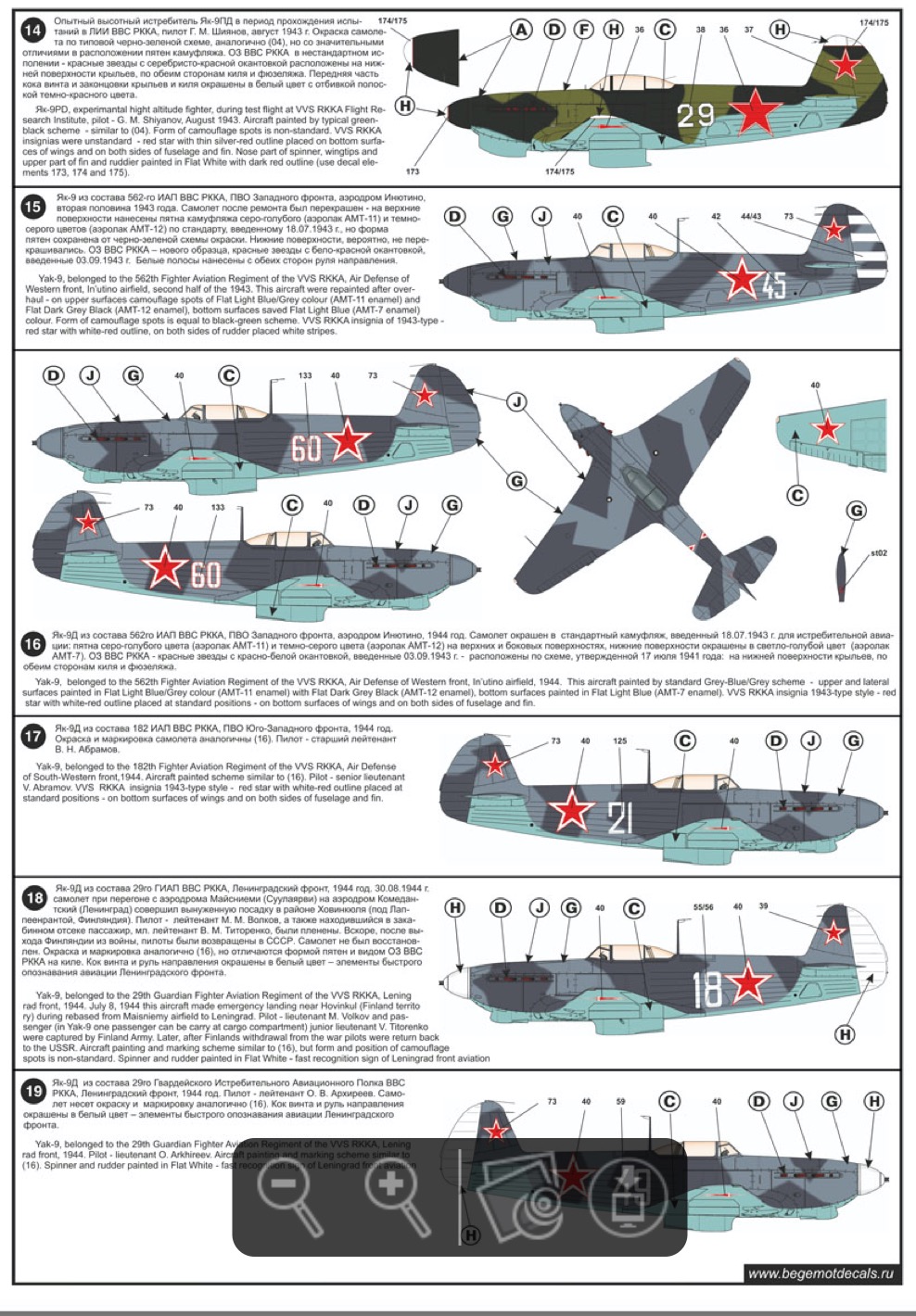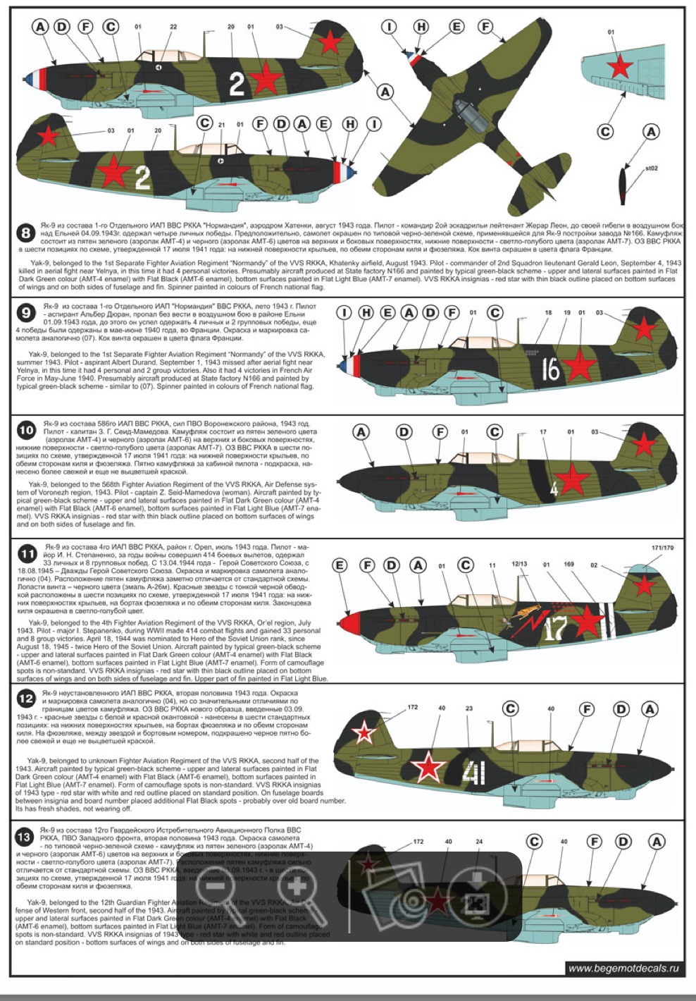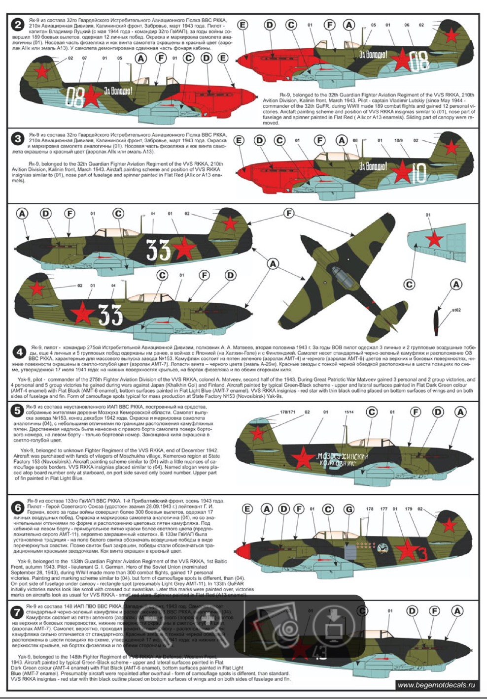 Begemot - 1/48 Yakovlev Yak-9 Decal with opportunity make 67 marking variations of Yak-9 family aircraft's all types, from next AF's: USSR.