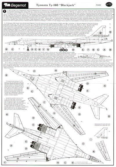 Begemot - 1/72 Tuplov Tupolev Tu-160 Blackjack (15) No 33 overall white, No 14 Ukranian Air Force, No06 `Ilya Muromets', No 05 Alexander Golovanov', No 01 `Mikhail Gromov', No 04 `Ivan Yarygin', No 03 Pavel Taran', No 07 `Alexander Molodchiy', No 12 `Vasily Reshetnikov', No 16 `Alexey Plokhov', No 10 `Vladimir Sudets', No 11 Vasily Senko', No 12 `Alexander Novikov', No 17 `Valery Chkalov', No 18 `No name. All 121st Guards Hbar Engels Air Force Base, Russia