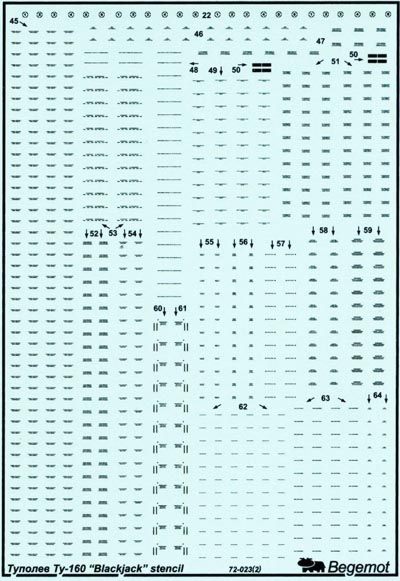 Begemot - 1/72 Tupolev Tu-160 Blackjack. Complete stencil data for one aircraft
