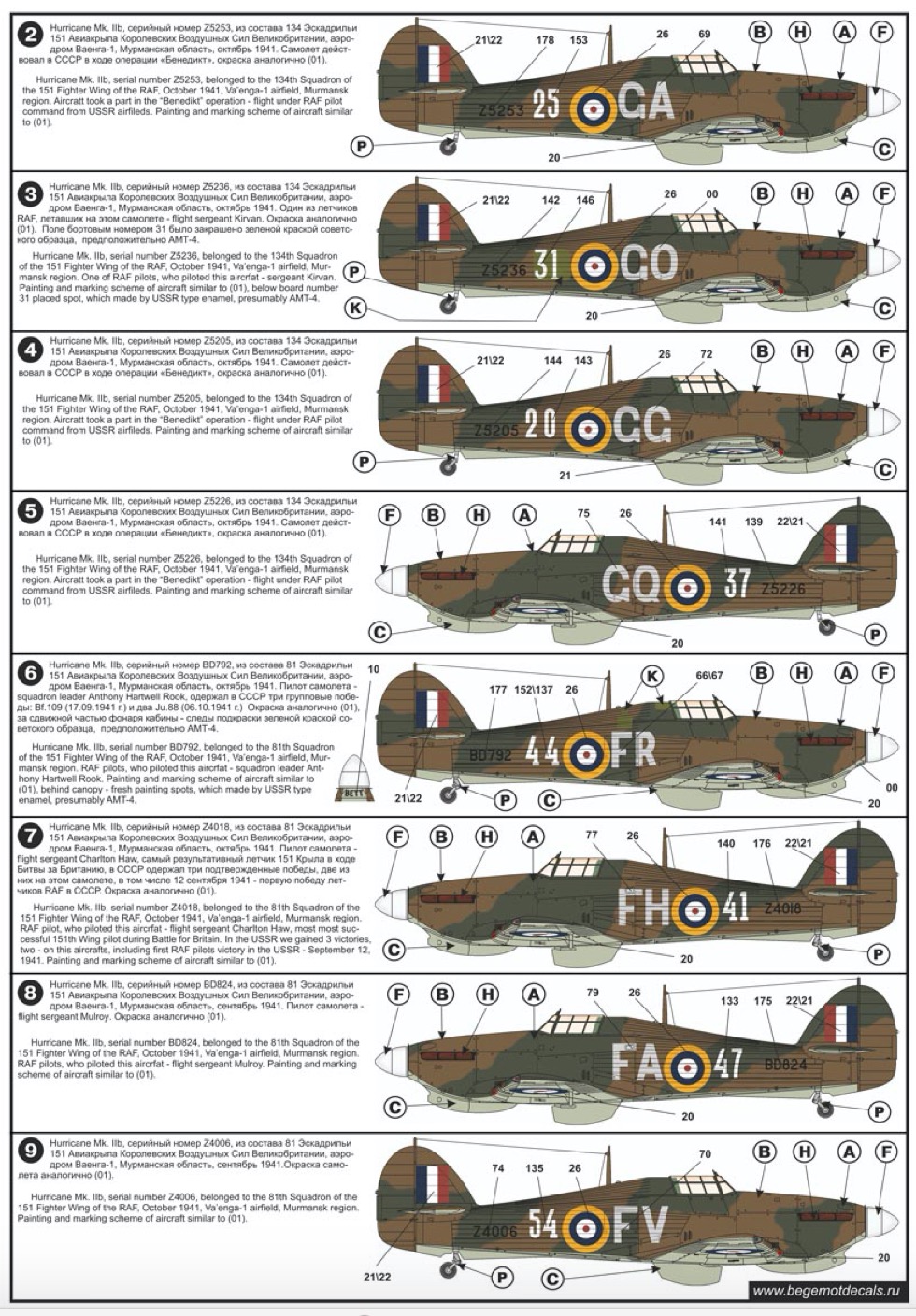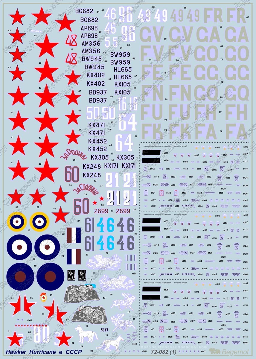 Begemot - 1/72 Hawker Hurricane in the Ussr Decal with opportunity make 71 marking variations of Hawker Hurricane aircraft of all modication from Vvs RKKA.