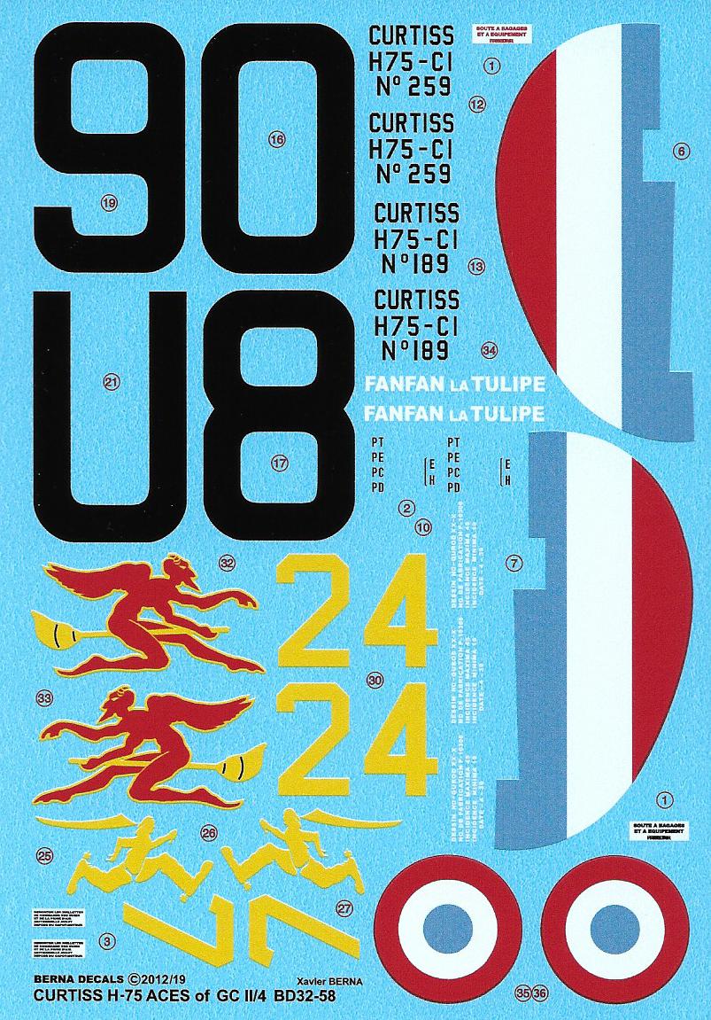 Berna Decals - 1/32 Curtiss H-75 Hawk (P-36) Aces of GC II/4: Casenobe N 189, Baptizet N 259.