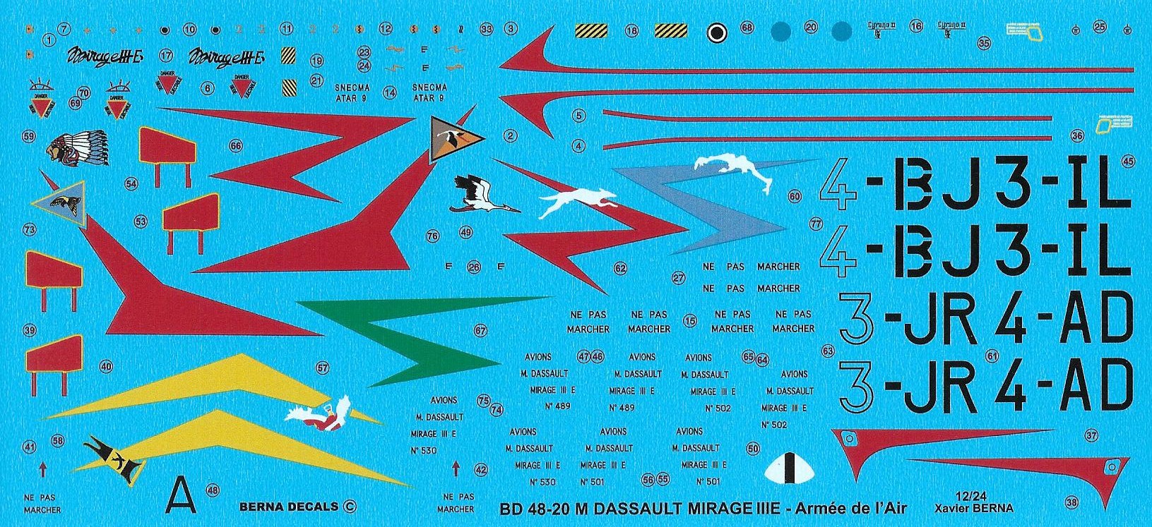 Berna Decals - 1/48 Dassault_Mirage IIIe Armee de l'Air in natural metal: 4-AD & 4-BJ Luxeuil 1966, 3-JR & 3-IL Nancy-Ochey 1967-69 4 schemes