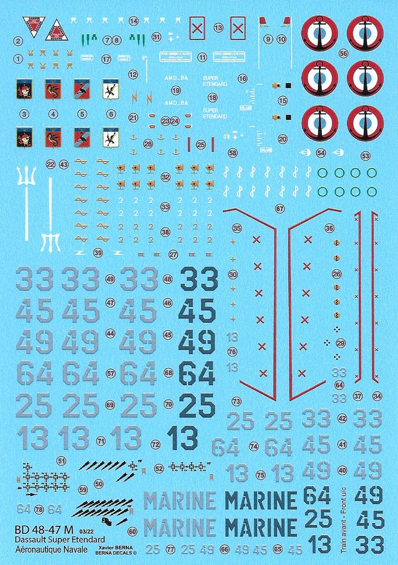 Berna Decals - 1/48 Dassault Super Etendard: 14F Landivisiau 1990 & 2000, 11F & 17F Carrier Foch Kosovo 1999 (7 schemes)