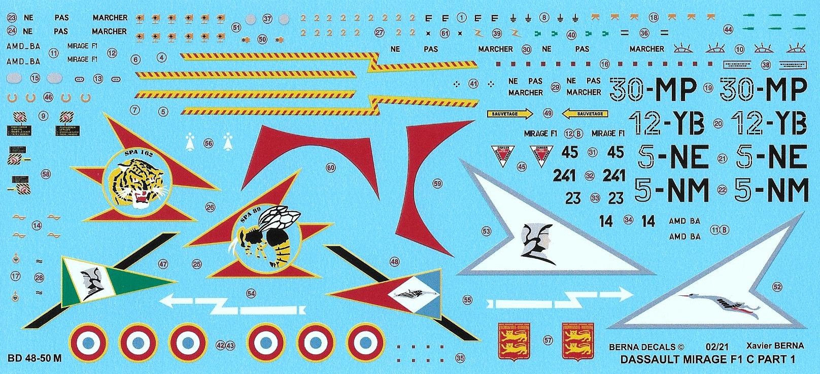 Berna Decals - 1/48 Dassault Mirage F1 C Part 1 12-YB, 30-MP, 5-NE, 5-NM (4 schemes)