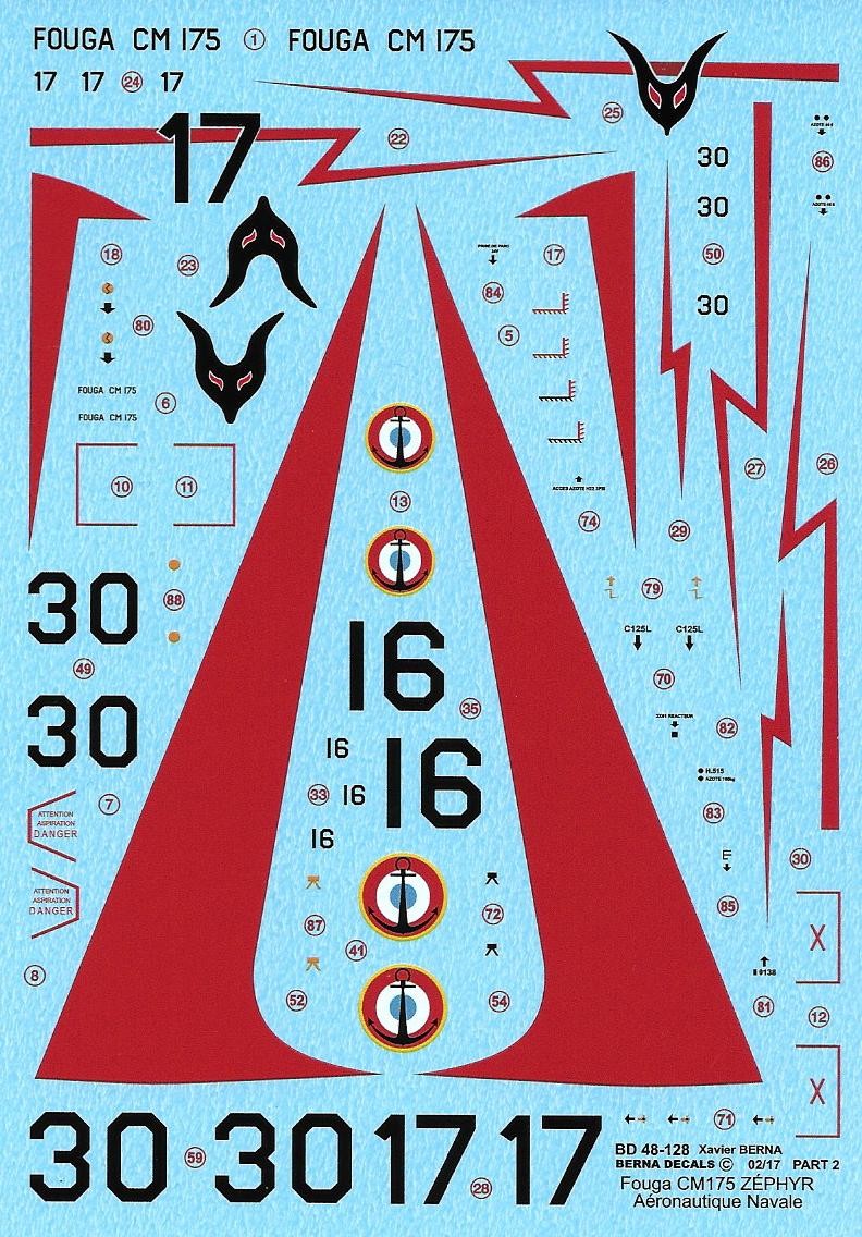 Berna Decals - 1/48 Fouga CM.175 Zephyr French Aeronavale : N 16 - 59S Aerobatic Patrol 1961-62, N 30 - 59S 1962 & N 17 - 59S Anniversary scheme 1993 (3 special schemes)