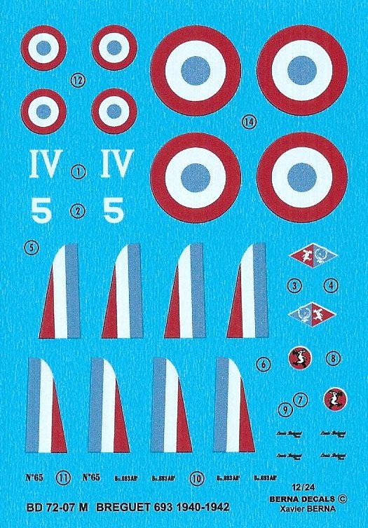 Berna Decals - 1/72 Breguet 693 Armee de l'air 1940 : Code 'IV' Gba I/51 Etampes 05/1940 & Code '5' Gba I/51 Lezignan Summer 1940