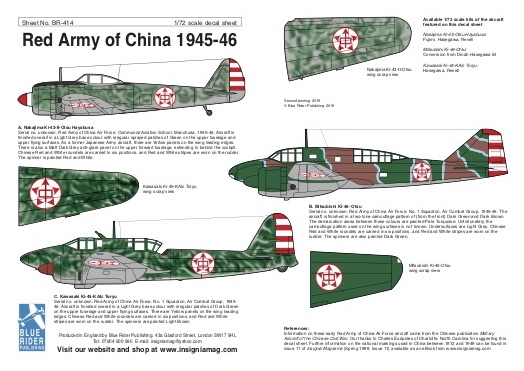 Blue Rider - 1/72 Red Army of China Air Force 1945-46. For Nakajima Ki-43 Hayabusa, Kawasaki Ki-45 Toryu, Mitsubishi Ki-46 Dinah