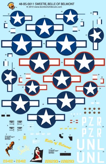 Bombshell - 1/48 Republic P-47D Thunderbolt 'Razorback' (3) 28412 PZ-R 486th FS/352nd Fg Maj General Luther Richmond Sweetie two versions, 226293 UN-L 63rd FS/56th Fg Lt Armand Laflam Belle of Belmont with D-Day stripes. both OD/grey