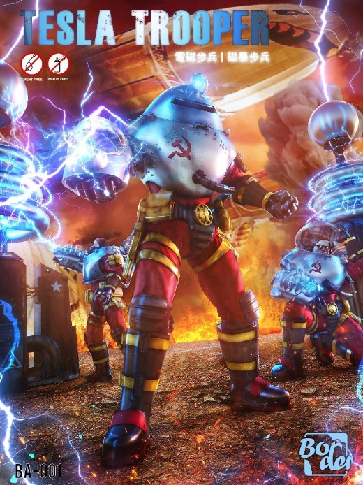 Border Model - Tesla Trooper 1/12 scale model kit of the Tesla Trooper from Command and Conquer Snap Together and coloured plastic and it's fully posable after assembly Lights up ? battery not includedDifferent heads are included ? Soviet Soldier and Professor & 3 hand types expected March 2025