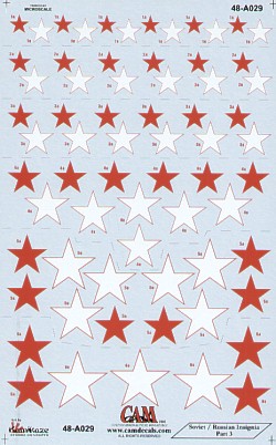 Cam Decals - 1/48 Soviet Red Stars National Insignia, 7 sizes. Can be used with or without red/white outline