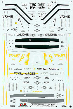 Cam Decals - 1/72 McDonnell-Douglas F/A-18C (2) 164629 AJ/301 VFA-15 Valions Uss JFK, 164006 NF/200 VFA-27 Royal Maces Uss Independence 1997