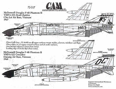Cam Decals - 1/72 McDonnell F-4B Phantom (2) 151463 WS/4 VMFA-323 Death Rattlers Vietnam 1967, 158377 DC/6 VMFA-122 Crusaders Da Nang 1968