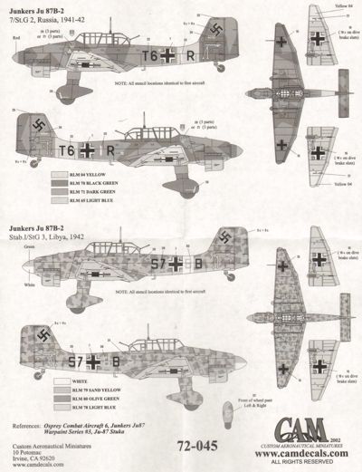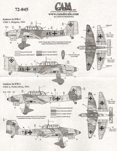 Cam Decals - 1/72 Junkers Ju-87B-2/R2 'Stuka' . Bulgaria'41, Russia '41, North Africa '41, Libya '42