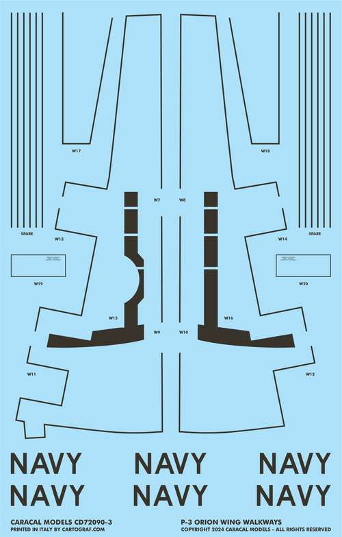 The first set in our series of 1/72 scale P-3 Orion decals honors this distinguished aircraft and the dedicated crews who operated it. Specifically designed for the Hasegawa kit, this set offers markings for 7 different Orions, each representing a unique aspect of its service history. We also included detailed, comprehensive stencilling and easy-to-apply wing walkways to make your next Orion project more enjoyable.