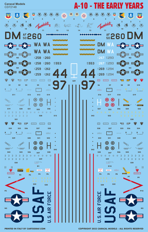 Much dedication and extensive research have been poured into this decal set, which not only includes markings but also comprehensive stenciling, allowing enthusiasts to authentically recreate any one of the provided options. Please note that the A-10 prototype had significant differences from production jets, and building an accurate replica will require conversion work. In 1/72 scale, the older Matchbox kit is generally accepted to be the kit closest to the prototype.