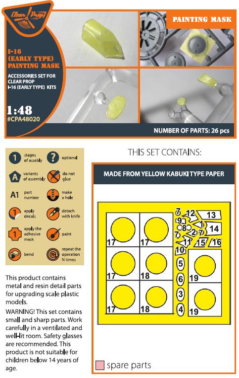 CLEAR PROP - 1/48 I-16 early version Painting mask for Clear Prop