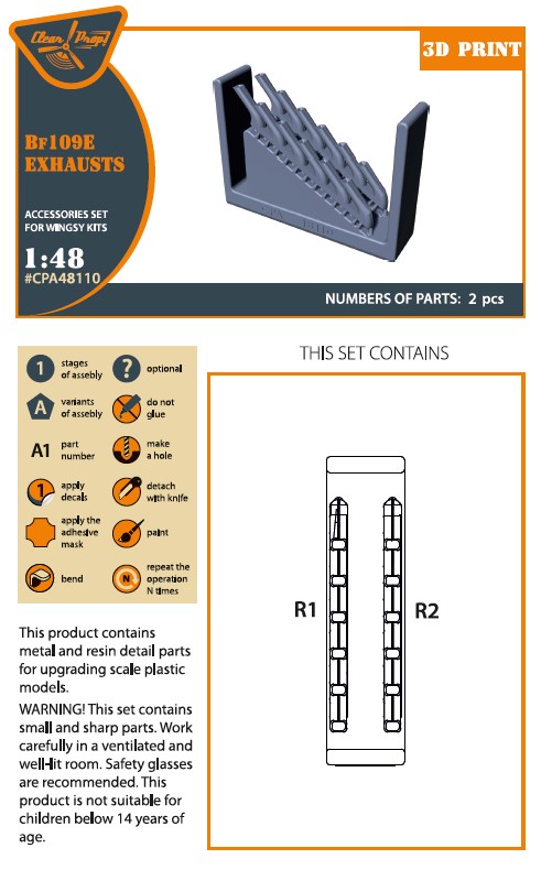 CLEAR PROP - 1/48 Bf-109E exhausts WINGSY