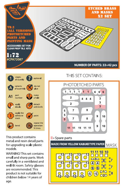 1/72 TB.2 PE parts & painting mask x2 for Clear Prop