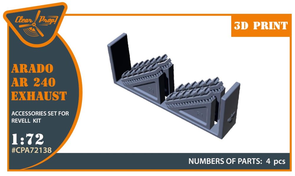 Clear Prop - 1/72 Arado Ar-240 exhausts (for Revell kits) (3D-Printed)