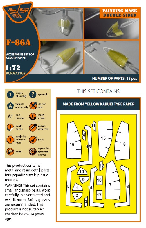 Clear Prop - 1/72 North-American F-86A Sabre double-sided painting mask on 'yellow kabuki paper' (for Clear Prop)