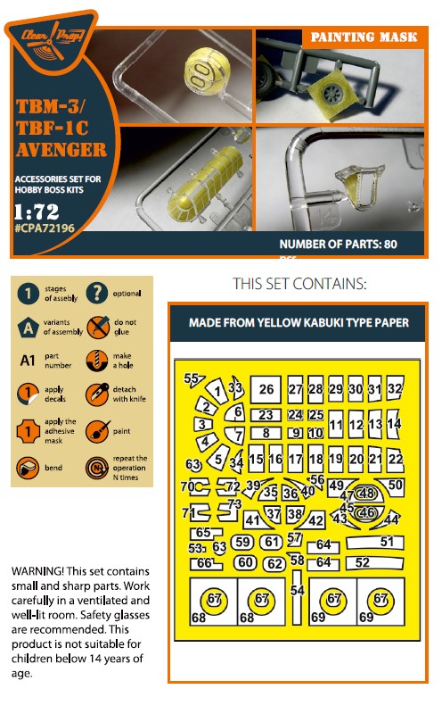 1/72 TBM-3/TBF-1C Avenger painting mask for Hobby Boss