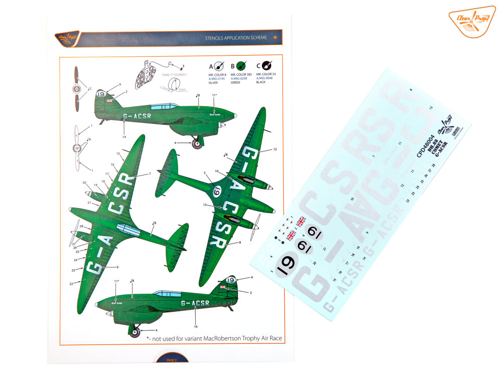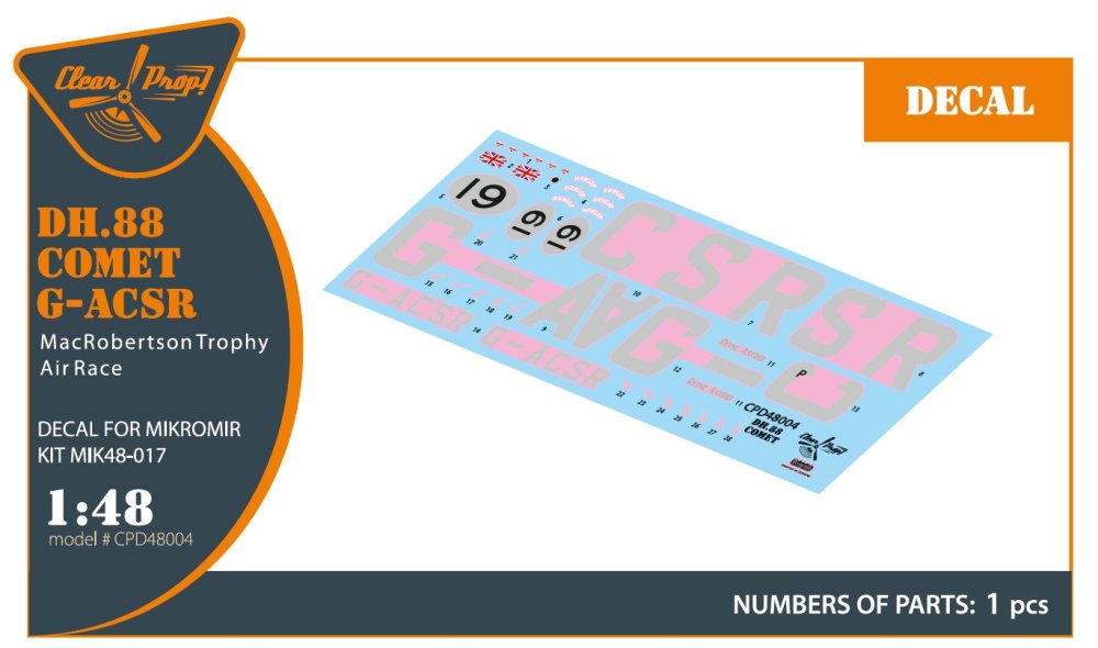 CLEAR PROP - 1/48 Decal DH.88 Comet G-ACSR for MikroMir