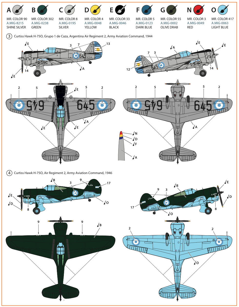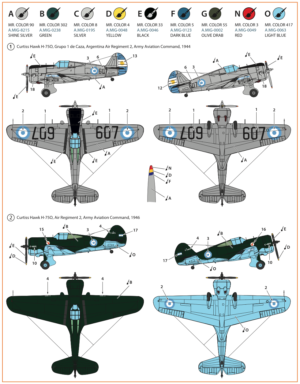 Clear Prop - 1/72 Curtiss-Hawk H-75M/N/O Decals Argentina with fixed undercarriage