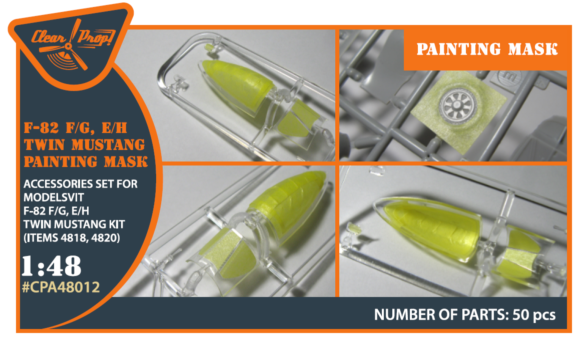 Clear Prop - 1/48 North-American F-82F/G, E/H Twin Mustang painting mask on 'yellow kabuki paper' (designed be used with Modelsvit kits) 4818/4820 kits)