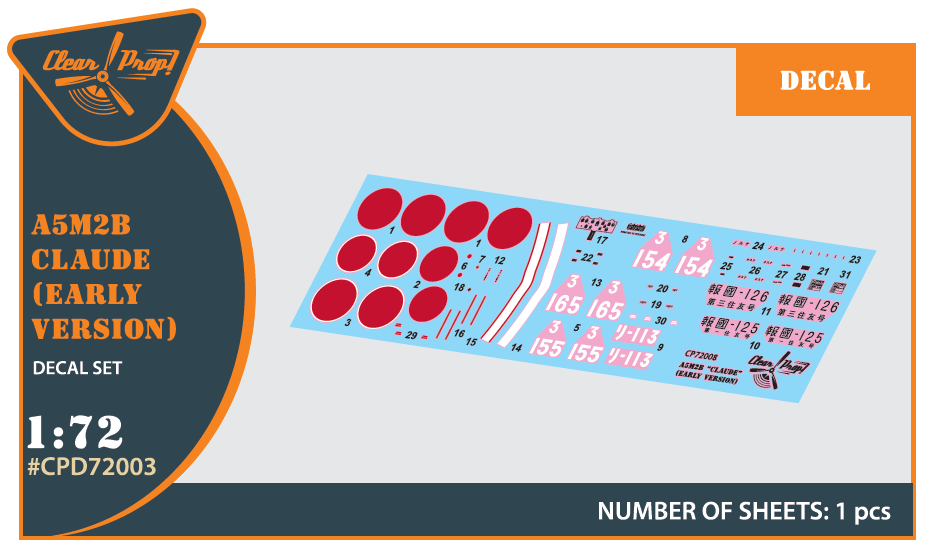 Clear Prop - 1/72 Mitsubishi A5M2b Claude (early version) decal set for Cp kit CP72006