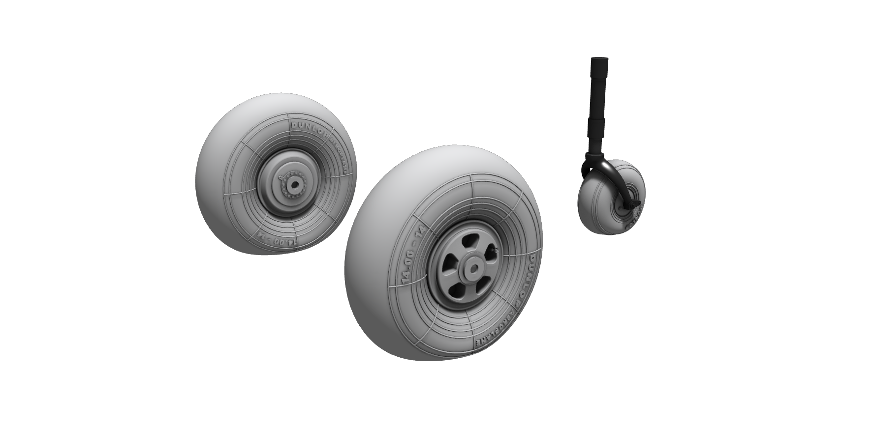 CMK - 1/48 Bristol Beaufort Mk.I Main wheels and Tail wheel with leg (for Icm kits) Mainwheels and tailwheel correction set designed for the otherwise very nice Icm Beaufort Mk.I kit. Our cast wheels feature weighted tyres as well as the correct type of the hub which is also of the correct size. The tailwheel leg is made from special resin material which is heat treated for greater strength. The tail wheel is also of the correct shape and size
