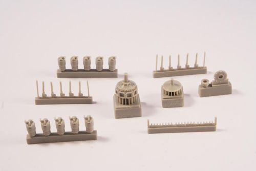 Highly detailed set of a French WW1 nine-cylinder rotary engine Le Rh?ne 9J. The cylinders, air intake and the plugs are separate pieces. Besides the Bristol M.1C, for which the set is made for, this engine was fitted also in other Allied aeroplanes such as the Nieuport N.17, Nieuport N.27, Hanriot HD.1, Avro 504 and the Sopwith Camel. The German Oberursel company produced this engine named as Oberursel Ur.II for the Fokker Dr.I, Fokker D.VI and Fokker D.VIII fighters. France, Gb / WWI