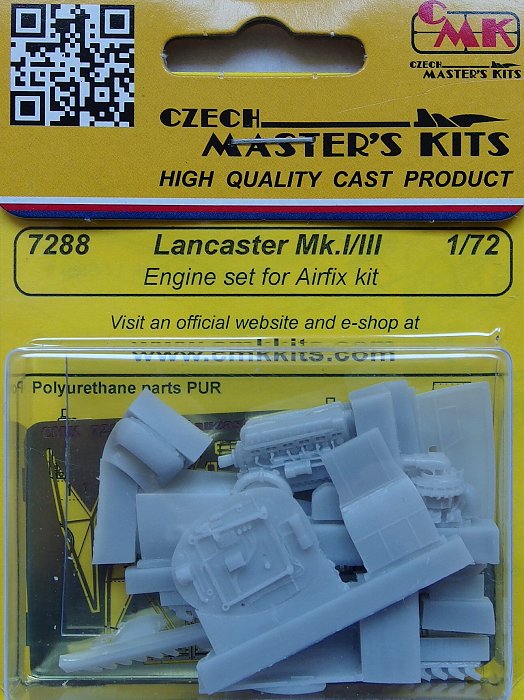 CMK - 1/72 Avro Lancaster Mk.I/III One engine set (for Airfix kits) Detailed set containing port inner engine installation with the cowlings, bearers, exhausts, engine bulkhead and the radiators. Avro Lancaster was wide-spread four-engine WW2 Raf bomber. The set contains colour photo etches.