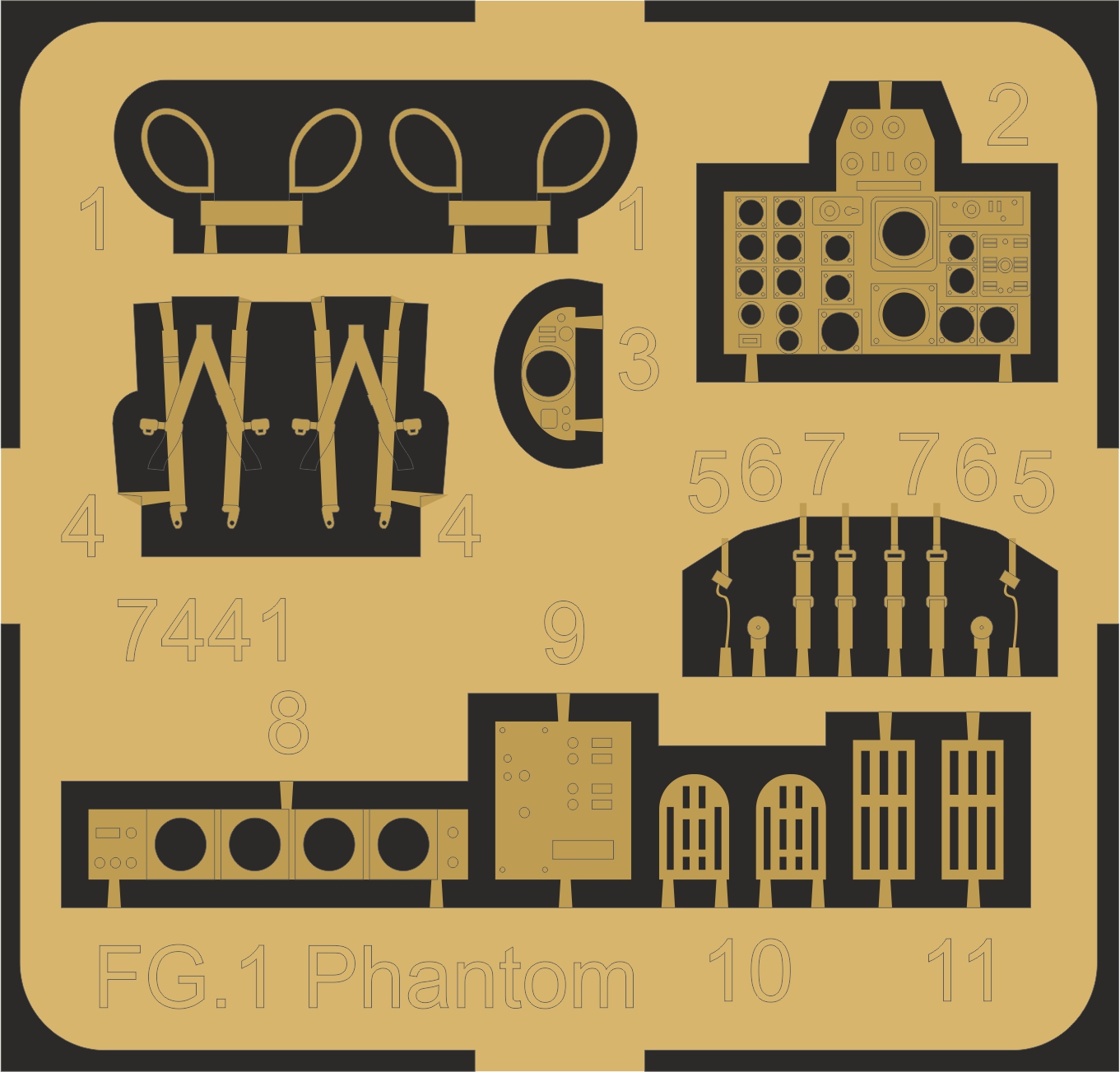 CMK - 1/72 McDonnell-Douglas FG.1 Phantom Cockpit Correction (for Airfix kits) This set completely replaces the original parts of the kit, which do lack many of the detail and essential components. The resin replacement items bring substantially more detail and are more complex, too. A fret of photo etches is also supplied.