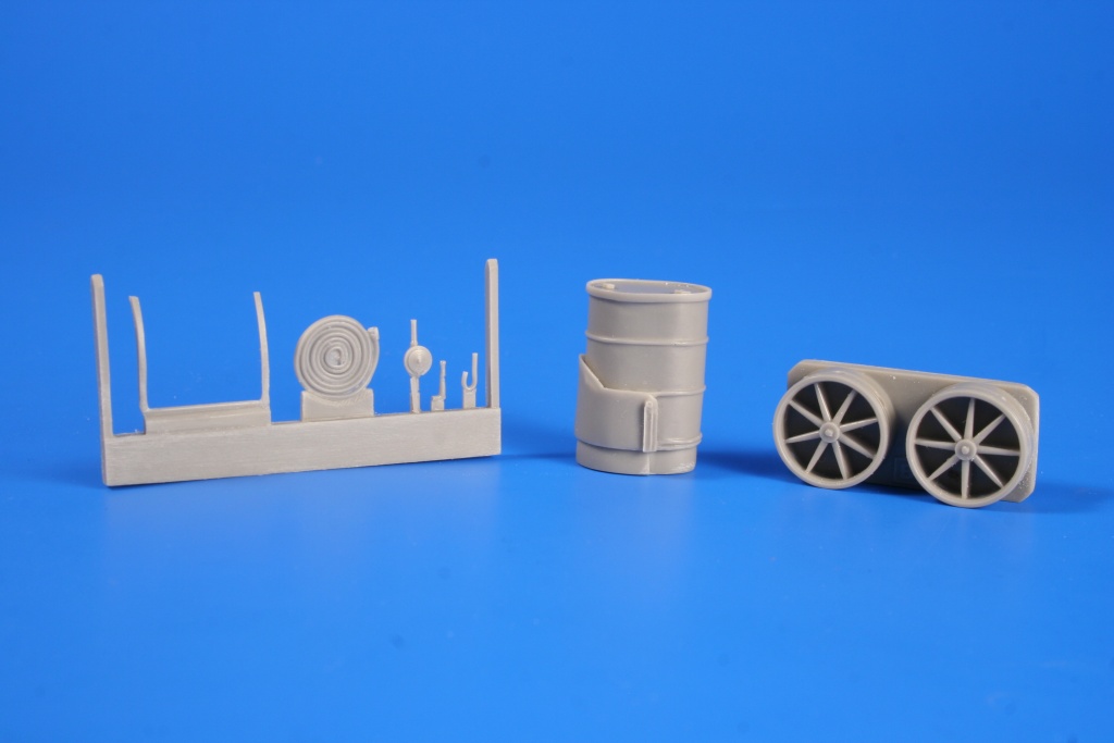 CMK - 1/48 British Rfc WWI aircraft Refueling set. Detailed cast resin model of a British WW1 fuel tank with a pump mounted on a two-wheeled cart. This refuelling set was widely used on British aerodromes during the First World War.