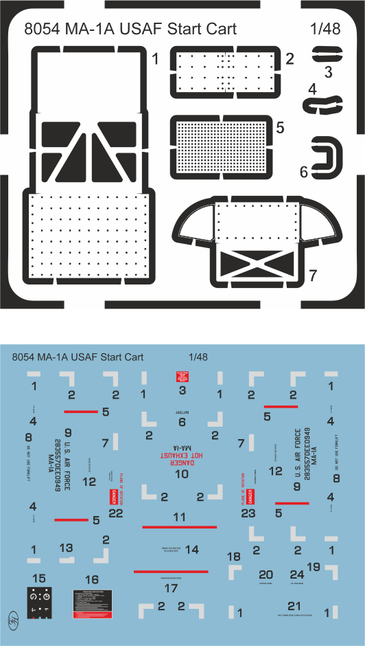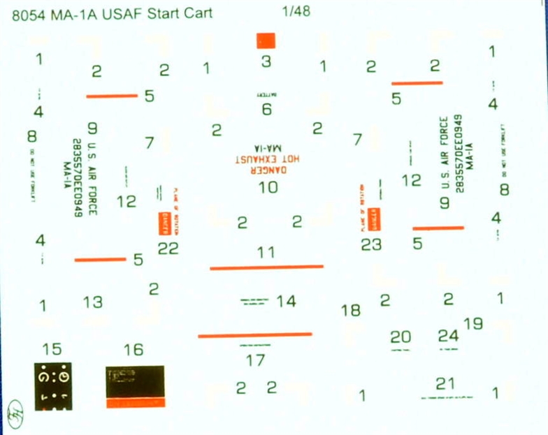 CMK - 1/48 MA-1A - 1/48 USAF Start Cart High pressure air starter unit used for starting an aircraft jet engine by means of high velocity air generated by a small turbine inside the cart. The MA-1A cart was in service since the 1950s and and was used to start number of US jet engine aircraft such as the T-33A, T-38 and many others, but could have been used with the huge C-130 turboprop as well.