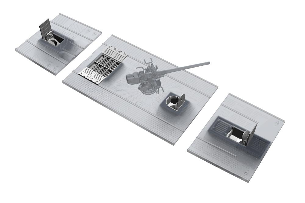 CMK - 1/72 Type Ixc exterior set part 1 In the early years of the war, enemy's submarines would attack and sink solitary ships with their guns while emerged on the surface, thus saving their precious torpedoes. This set brings open deck hatches and open 105mm cannon ammo box. The parts were 3D designed and masters produced on a 3D printer.