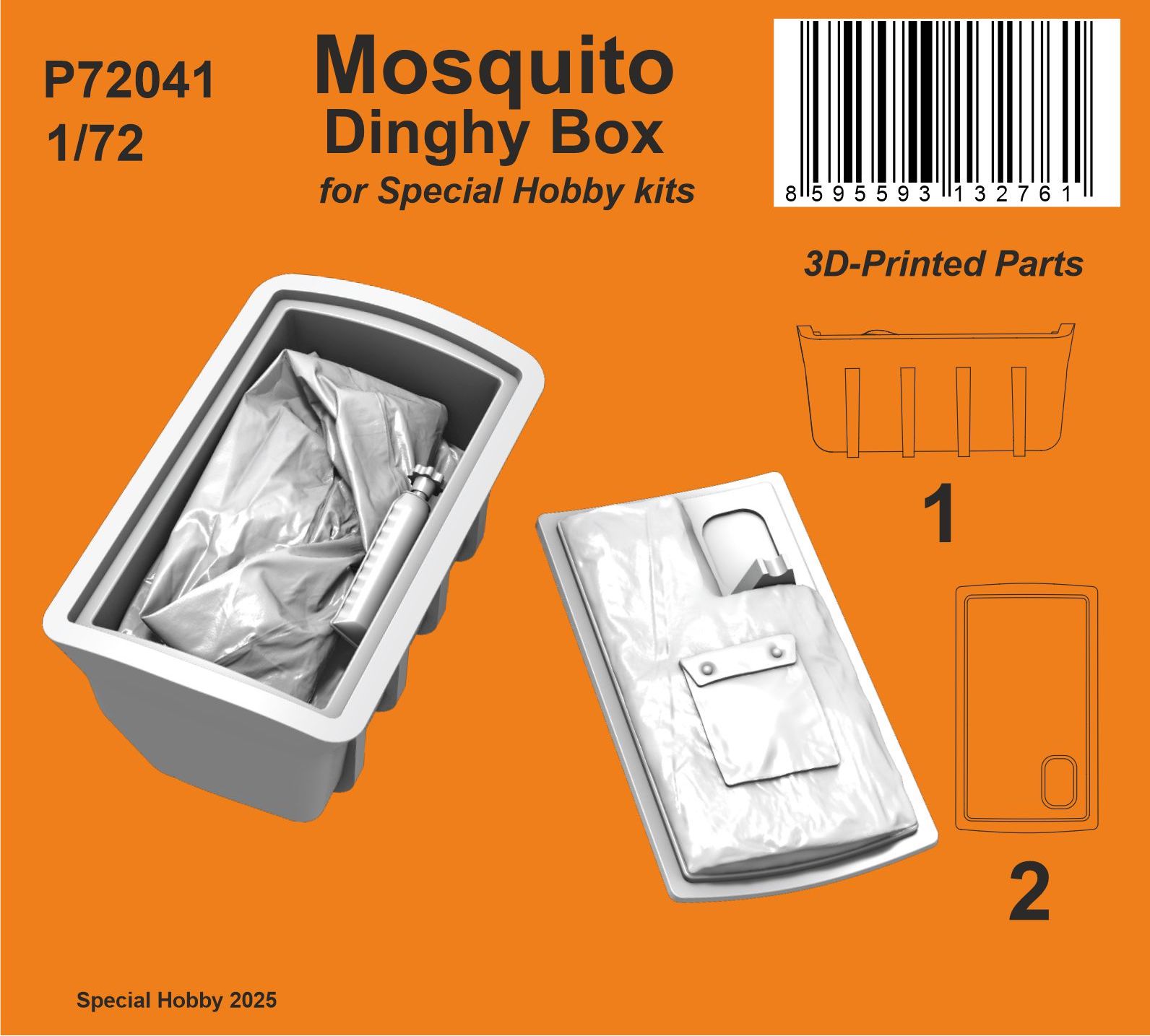 CMK - 1/72 De Havilland DH.98 Mosquito Nf Mk.30 Dinghy Box (for Special Hobby kits) 3D-printed dinghy compartment also including the dinghy itself. The Mosquito had this box right behind the canopy on the top of the fuselage which makes it a detail very well visible.