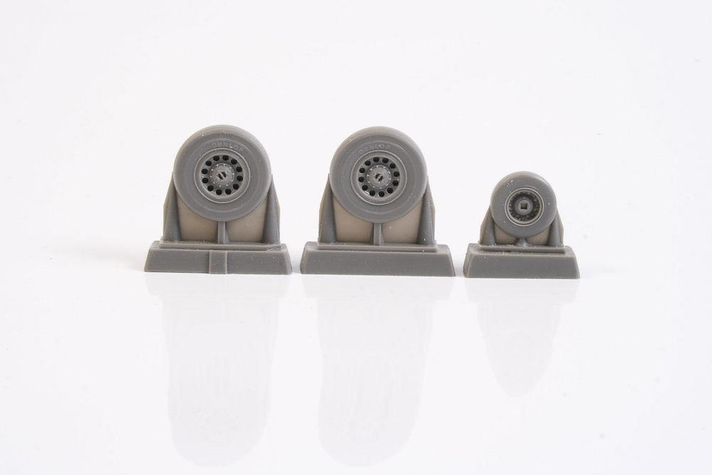 CMK - 1/48 de Havilland Sea Vixen FAW.2. Wheels Set (for Airfix kits) This set brings a new nose wheel and a pair of mainwheels with finely detailed tread pattern, hub caps and brakes. The original kit parts lack many of the detail as well as the brakes (the same for the resin wheels produced by the competition). 3D designed and master parts produced in 3D printer.