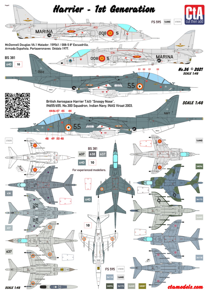 CtA Cut then Add - 1/48 BAe Harrier 1st Generations & Two Seater (UK, Thailand, India, USA, Spain 6 Markings) GR.3, AV-8A x 2, Sea Harrier FRS.51,
