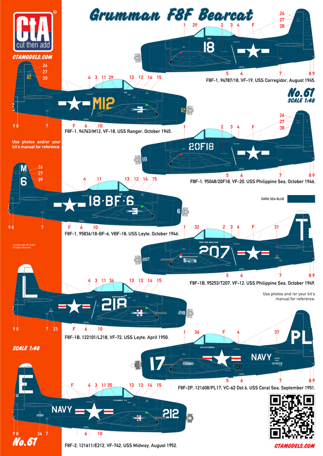CtA Cut then Add - 1/48 Grumman F8F Bearcat All types of this aircraft, USN, 8 Markings